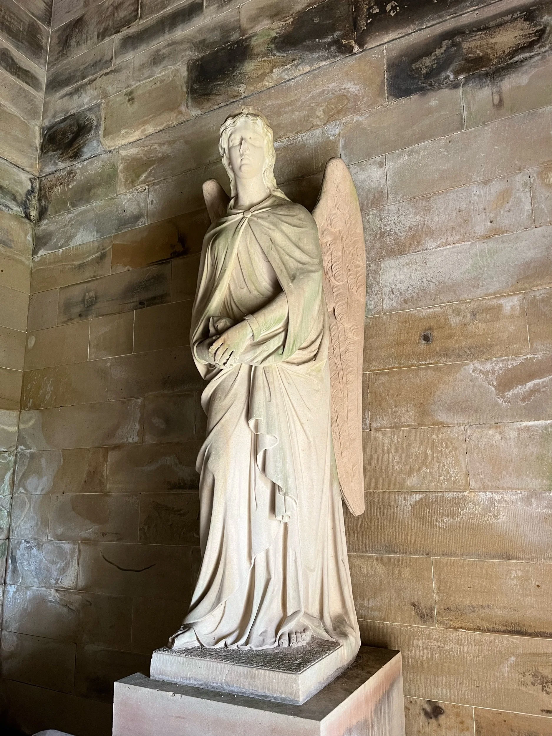 The building was completed during his lifetime, to a design by Peddie and Kinnear of Edinburgh, using local craftsmen including Hawick sculptor Alexander Pirnie, who created the magnificent lions guarding the entrance and the angels inside the crypt. The angels are reputed to be designed after Monteath’s daughters however the excellent volunteer guide confirmed to me that no portraits exist to confirm this - but it doesn’t feel like too much of a stretch. Credit is due to Ancrum and District Heritage Society for the information on Monteath and the construction of the monument.